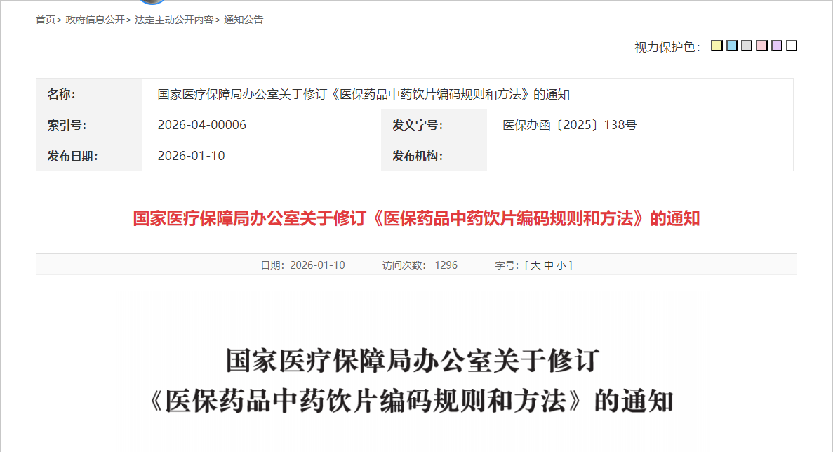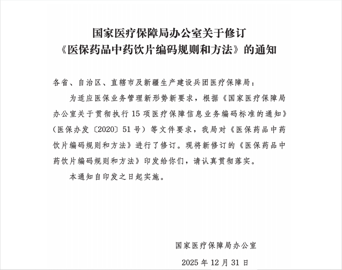 国家医疗保障局办公室关于修订《医保药品中药饮片编码规则和方法》的通知